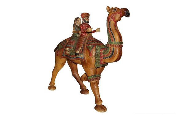 This is a perfect symbol of romantic tale of "Dhola" and "Maru" in Rajasthan. The Dhola Maru story is deeply rooted in folklore and oral traditions in desert region. This handcrafted piece is a piece of story when Maru is bitten by a snake and in sorrow Dhola decides to burn himself as 'male sati'. But he was save by some yogi who claimed that they could bring Maru back to life. They played their musical instruments and brought back Maru to life. Villain again tried to kill Dhola, but however they escaped from there riding back on the wonderful flying camel and the couple lived happily ever after. It is a perfect decor to start a conversation and talk about the infamous love story.